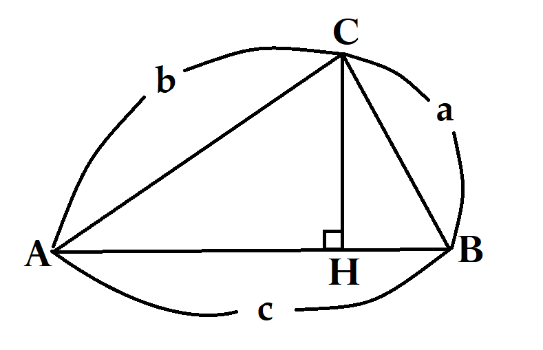먼저 점 C에서 선분 AB로 수선을 하나 그어주고, 그 점을 H로 둔다.