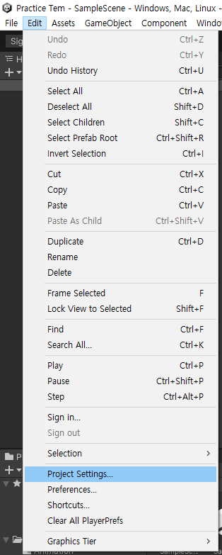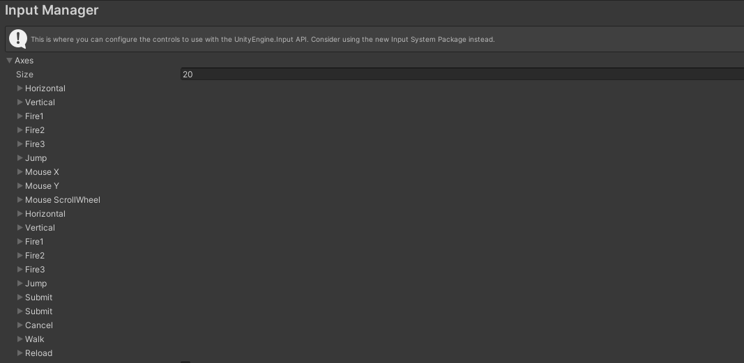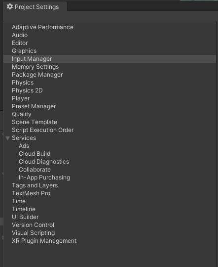 먼저 Edit -> Project Settings -> Input Manager로 가준다.