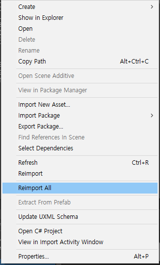 Reimport All을 해보자.
