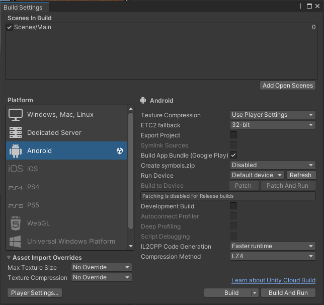먼저, Bulid Settings로 들어가준다.