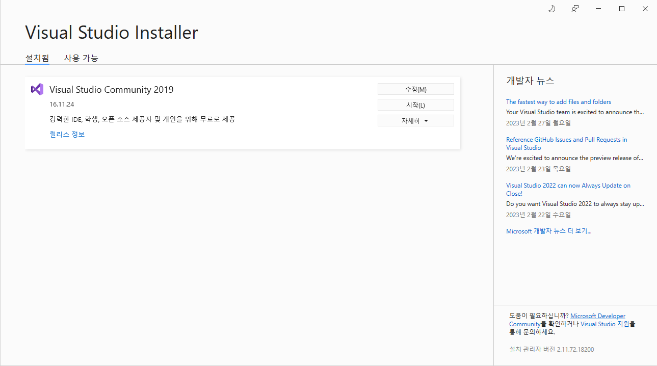 그래서 Visual Studio Installer가 있다는 가정 하로 진행하겠다.