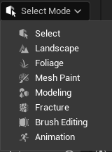 4. 모드 선택 창 : 다양한 모드를 선택할 수 있음. (유니티의 여러 가지 탭 여는 버튼의 집합?)