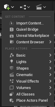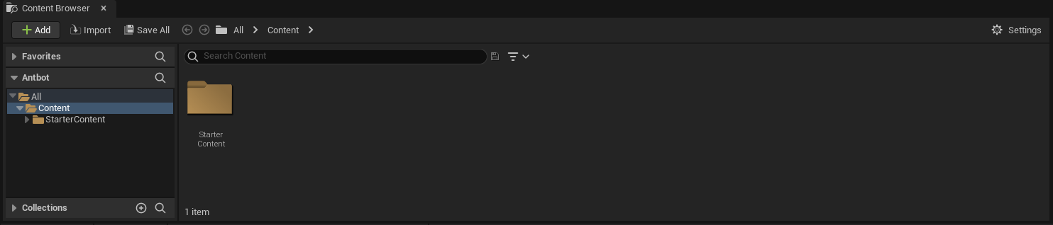 7. Content Drawer(Content Browser) : 에셋을 보관하며 유니티의 프로젝트 창과 같음.