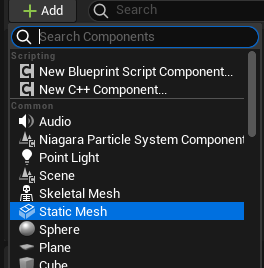 Add -> Static Mesh를 눌러서 Static Mesh를 만들어준다.