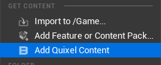 우클릭 후, Add Quixel Content를 눌러준다