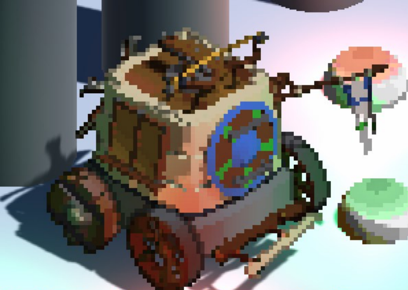 매끈하게 디자인되어 있는데, 앞에 있는 수레? 는 픽셀화 되어있다.