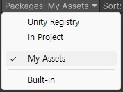 그 후, Packages: 를 My Assets로 바꿔준다. (에셋스토어에서 다운로드한 에셋들의 모음)