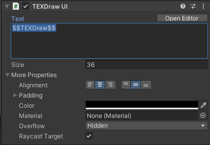 TEXDraw는 UI이기 때문에 자동적으로 Canvas를 부모로 생성된 걸 볼 수 있다.