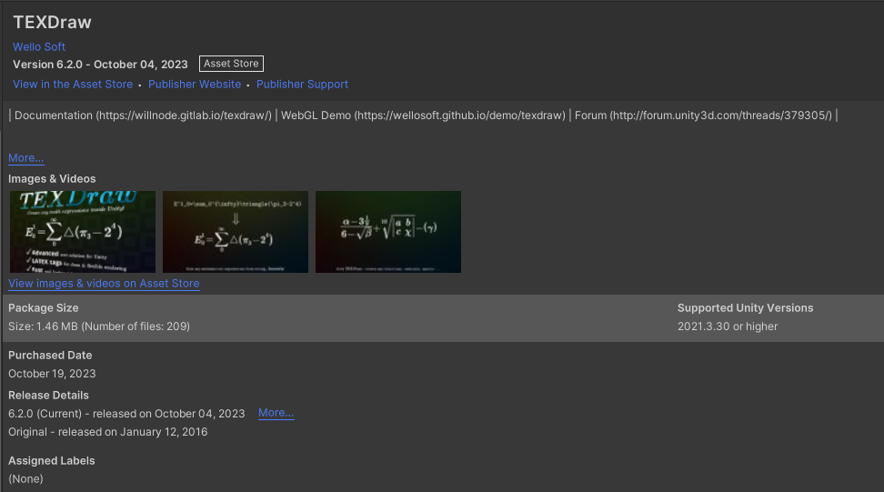그럼 TEXDraw 에셋을 찾아서, 다운로드 후 Import 해주면 된다.