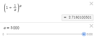 이건 반대로 "0에 가까운 수"를 넣을수록 e와 가까워지게 된다.
