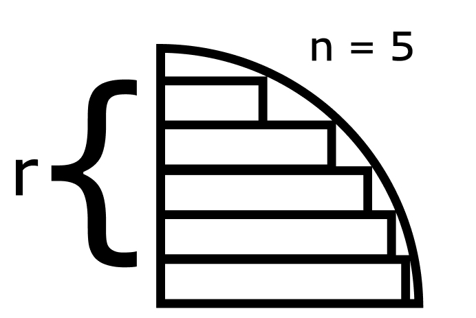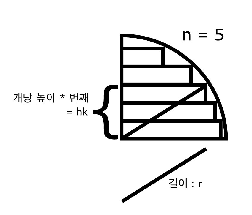 n : 나눌 횟수(원기둥의 개수) , k : k번째 원기둥을 의미하기 위한 변수. (1~n까지의 범위를 가짐) , r : 반지름