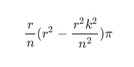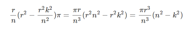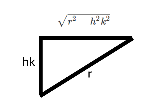 피타고라스 정리를 생각하면, 반지름의 제곱은 r^2 - h^2k^2이고, 높이는 h (r/n)이다.