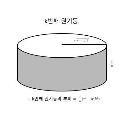 최종적으로, k번째 원기둥의 부피는 위의 식과 같다고 말할 수 있다.