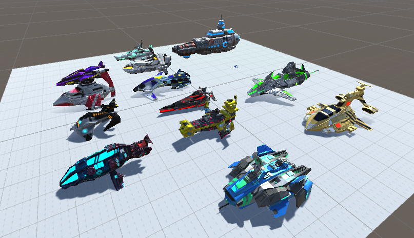 데모 신을 열면 이렇게 우주선들이 나열되어 있습니다.