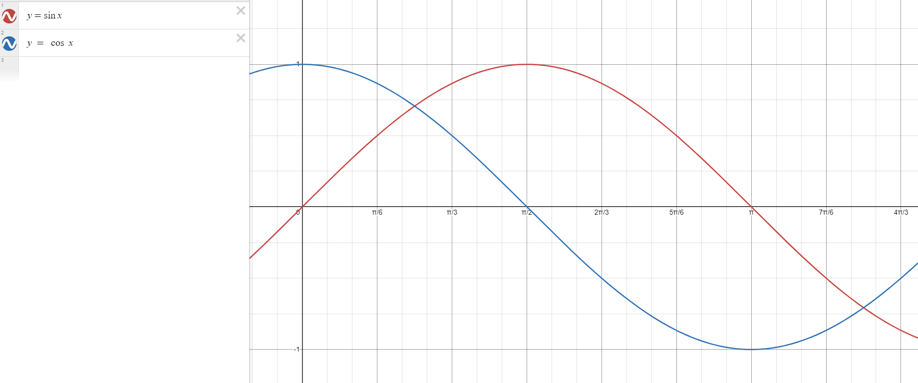 이건 sin x와 cos x를 그린 그래프이다.