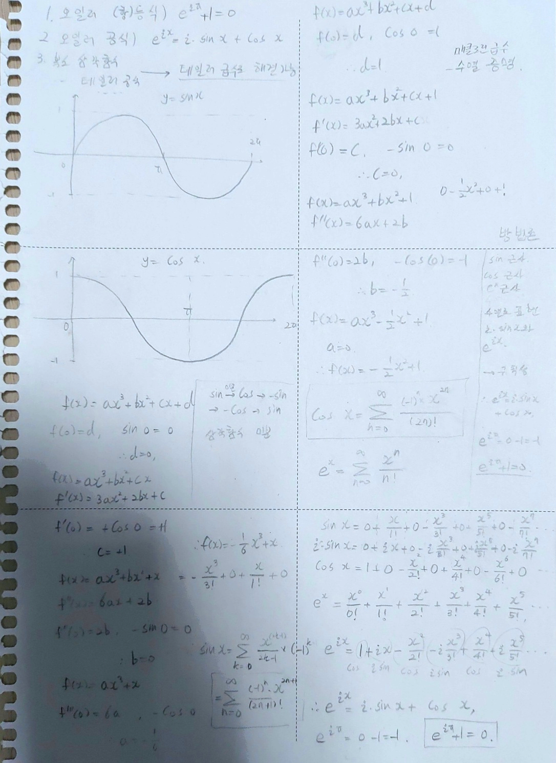 여기서는 코사인 함수를 테일러급수로 전개했는데 사인함수도 똑같은 방법으로 하면 된다.