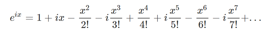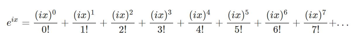 오일러 공식을 유도하기 위해서, e의 ix승 함수를 테일러급수로 표현하면 좋다.