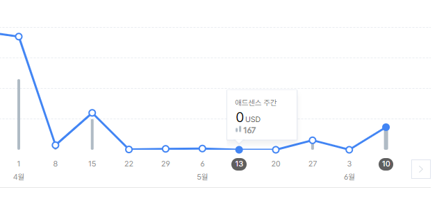 4월 8일에 광고 정지가 시작되어 현재인 6/14일까지 이 상태가 계속되고 있습니다.