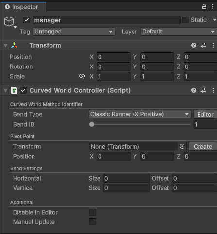 Bend ID는 이 컨트롤러를 인식할 수단이다. 나중에 월드의 휘어짐 방식을 결정하는