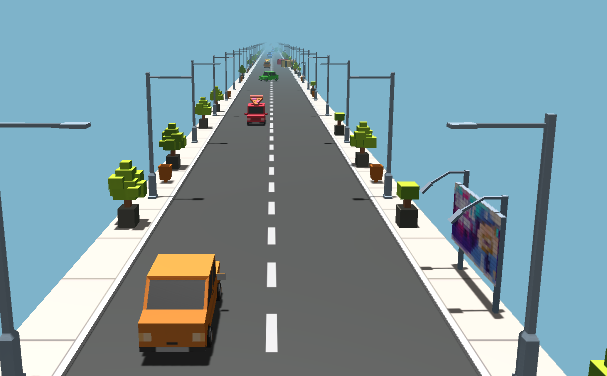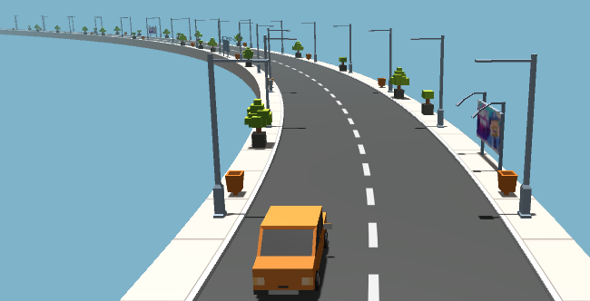 앞선 데모씬에서 도로가 계속 이어지며 휘어졌었다.
