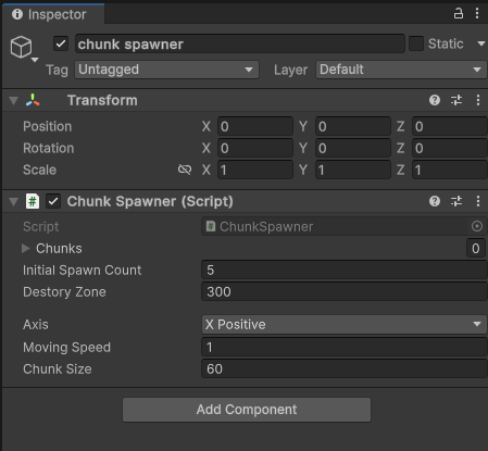 > Chunks 부분에 우리가 만든 네모를 넣어주고 세팅 좀 해주면 된다.