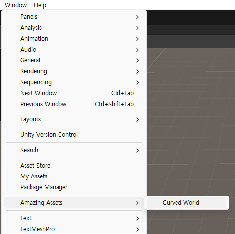월드 세팅이 필요하다. 위 사진처럼 Curved World를 눌러주자.