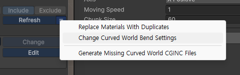 이후 사진처럼 [Change Curved World Bend Settings]를 눌러주자.