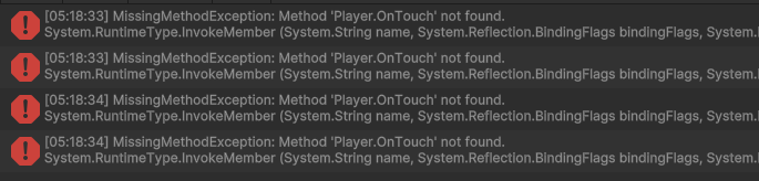 여기까지 MissingMethodException: Method 'Player.OnTouch' not found. 에 대해서 알아봤다.