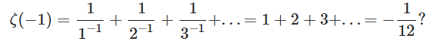 빠르게 넘어가겠다. 리만 가설의 맥락으로 보자면 제타 함수에 -1을 넣은 값이고, 이건 말이 안되기 때문에