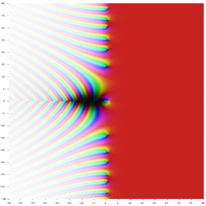 리만 제타 함수를 Domain Coloring이라는 기법을 통해 그래프로 표현한 것인데,