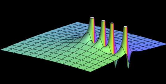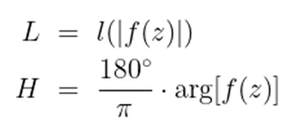 표현하고 출력되는 복소수의 특성 중 편각과 길이를 이용해 각각 명도와 색상으로 바꿔 점으로 표현한 그래프이다.