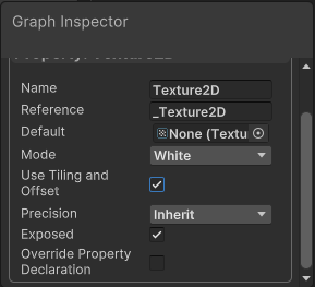 타일링을 하고 싶다면 프로퍼티로 승격한 Texture을 클릭하고 Graph Inspector를 열어보면