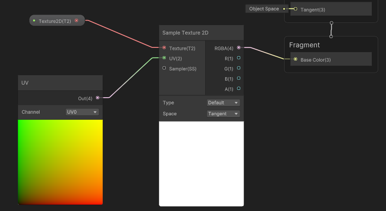 UV도 연결해 주면 도움이 될 것이다. 그리고 메인 기능은 Sample Texture 2D에서 담당한다.
