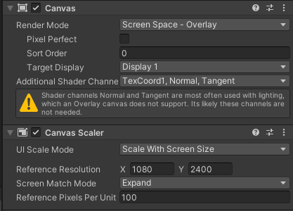 이런경우는 Canvas 오브젝트에 Canvas Scaler 이라는 컴포넌트를 통해