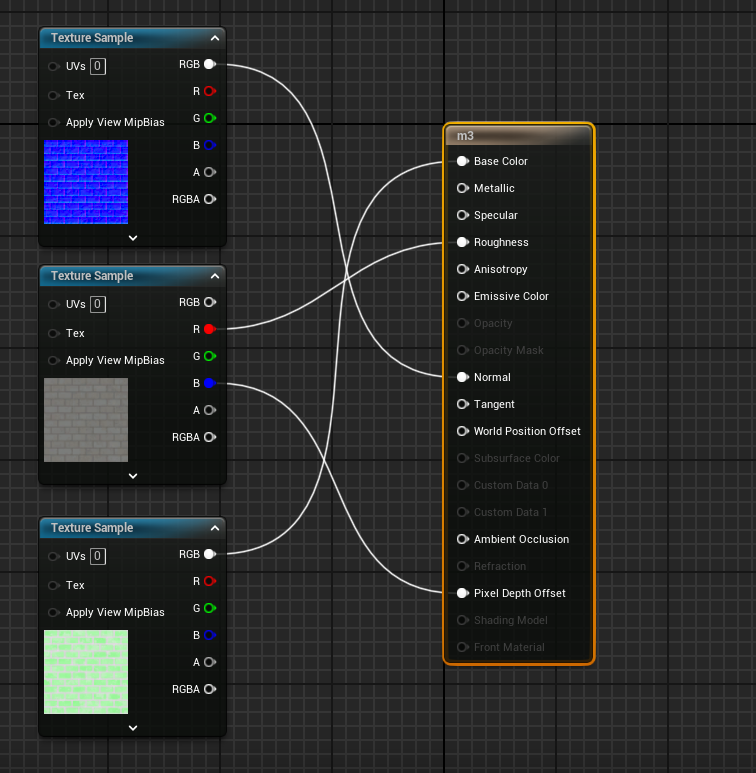 노멀 맵, 텍스쳐, 뎁스 맵..? 등이 있을 때 이렇게 연결해주면 된다고 한다.