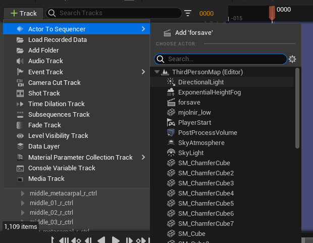 이후 +Track을 열어서 액터를 선택해주자. 스켈레톤 모양을 찾으면 될 것이다.