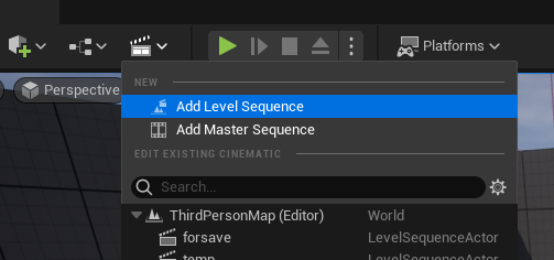 Add Level Sequence를 통해 레벨 시퀀스를 만들어주면 창이 열릴 것이다.