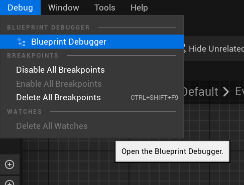 Debug -> Blueprint Debugger을 클릭해 주자.