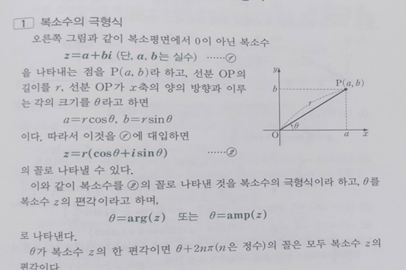 [15]. 『 수학의 정석 행렬, 벡터, 복소평면 기본 』 (극형식과 편각 참고)