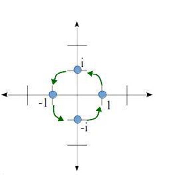이 부분에서 또 이해가 되지 않았다. 이걸 알기 위해서는 복소 지수에 대한 이해가 필요하다. 영상을 보면 회전에 관한 이야기가 나온다. 복소평면에서의 회전을 공부한 적이 있었는데, 허수(i)를 곱하면 복소 평면상에서 90° 회전한다는 정보를 알고 있었다. (위 사진)