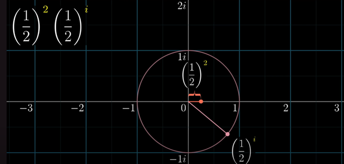 ai의 2번은 쉽게 해결 가능하다. 그저 방금 정리한 1/2의 극형식에 i만큼 제곱하면 된다. 지수 법칙, 로그 법칙을 이용해 정리해준 결과로 볼 수 있다. (ln(x)는 자연 로그 함수)