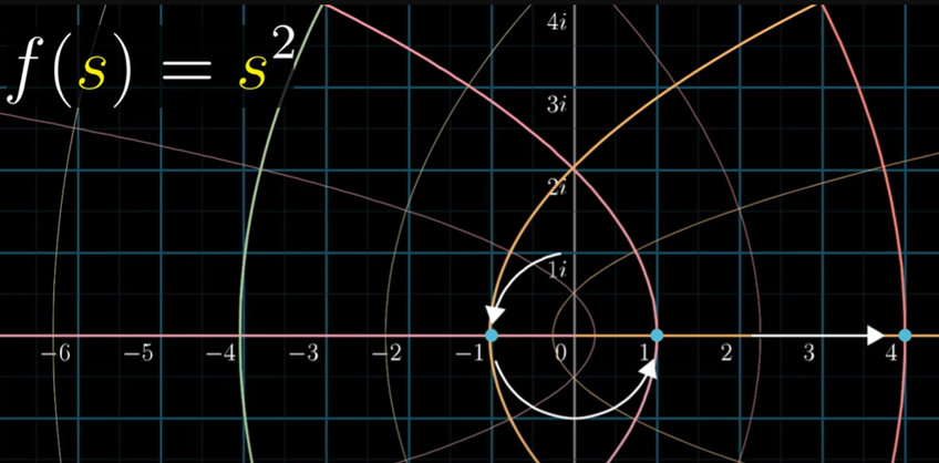 우리가 아는 데카르트 좌표계였다면 익숙한 이차함수 그래프가 나왔겠지만 s는 복소수이고, 좌표평면은 복소평면이기에 저런 그래프가 나오게 된다. 이걸 함수의 변환이라고 표현하는 것 같아 이에 대해 자세히 찾아봤다.