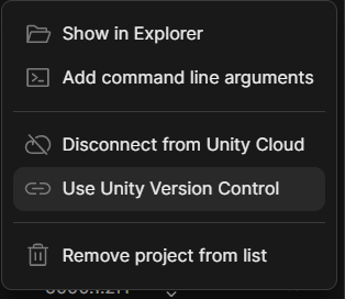 그러면 이런 창이 뜨는데, use unity version control을 누르면 유니티 클라우드와 연결된다.