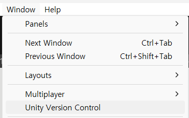 그리고 프로젝트 내부에 가서 [Window] -> [Unity Version Control]을 눌러보면 새로운