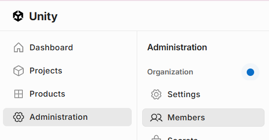 이렇게 가주면 멤버를 초대해 줄 수 있다. 유니티 계정을 만든 계정 주소를 넣어서