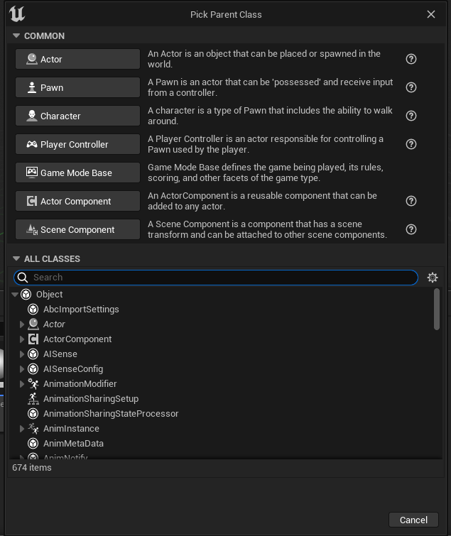 사실 우리가 BP를 만들때부터 상속이 진행된다. 처음 선택하는 Actor, Pawn등의