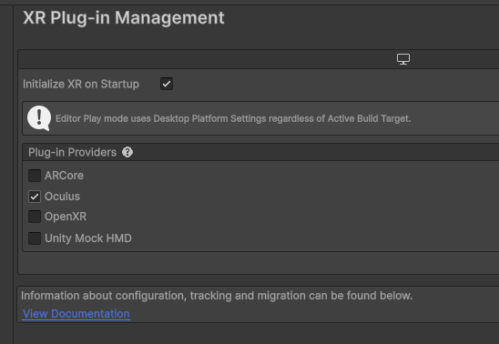 유니티 에디터에서 Play 버튼을 눌러서 본인의 VR 기기에 연결하여 개발을 시도하는 경우,