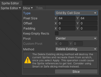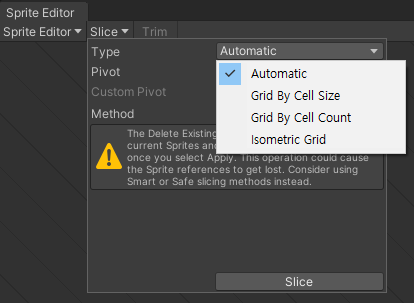 가운데 쯔음에 있는 Sprite Editor를 열여준다.