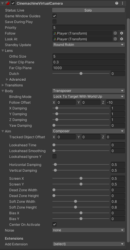 Follow와 Look At에 Player을 넣어주면