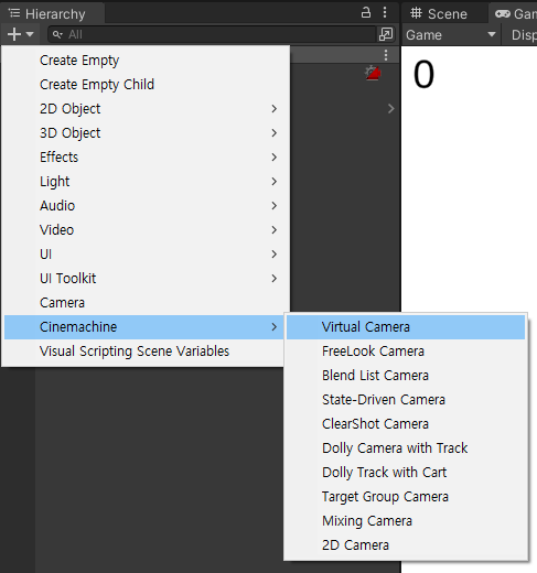 이렇게 Virtual Camera를 만들어줄 수 있다.